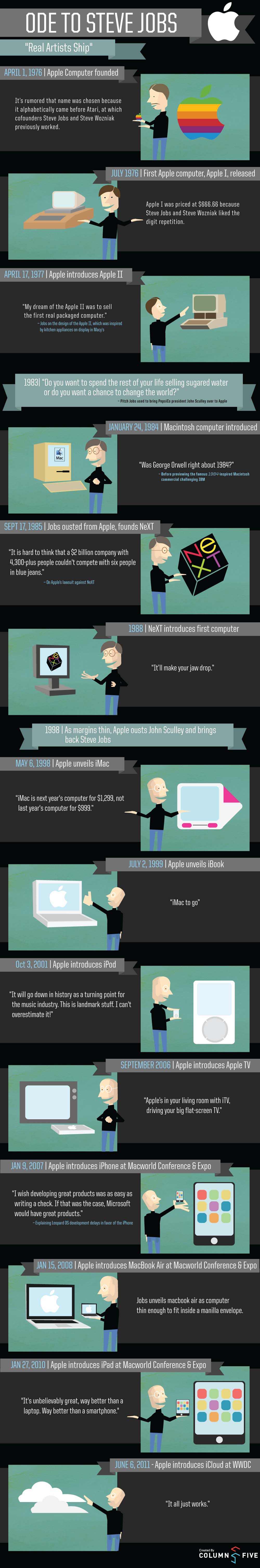 La reacción del mundo al enterarse de la muerte de Steve Jobs no se hizo esperar, la noticia esta en todas las portadas, es una muestra de su legado, de lo importante que fue Steve Jobs en el mundo de la tecnología, las Apple Store han empezado a recibir ofrendas a sus puertas alrededor del globo, para quienes no conozcan de la historia de este gran genia que nos ha dejado, les invito a ver las siguientes infografías de Steve Jobs que muestran sus mas grandes logros, también a ver el video del discurso en la universidad de Stanford.