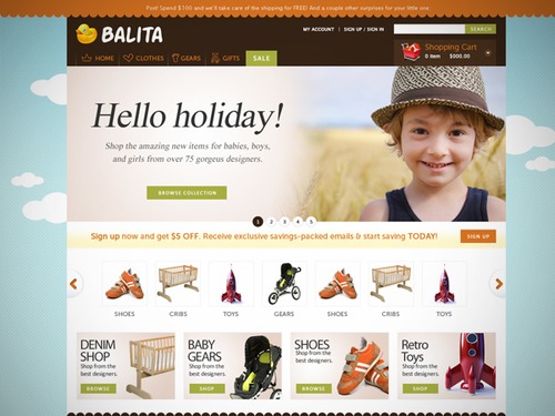 Excelente plantilla para wordpress que han compartido en Smashing Magazine, especialmente diseñada para sitios dedicados a E-Commerce, esta lleva el nombre de Balita y es completamente gratis, mantiene los estándares básicos de diseño web, tiene una completa integración con Wordpress, incluye un plugin para E-Commerce y esta optimizada para HTML5 y CSS3, otras de sus características son: