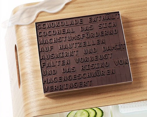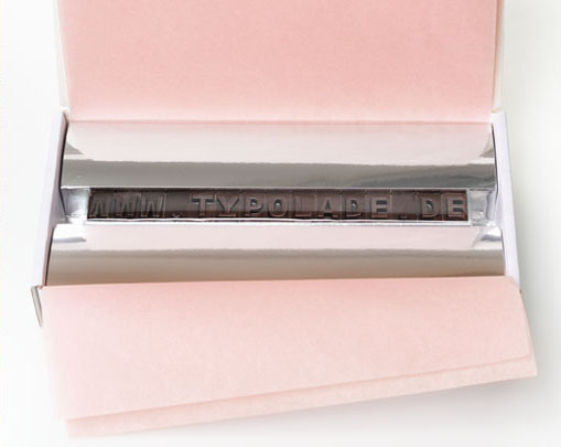 Typolade es un proyecto en el cual una empresa alemana forma palabras con tipografías de chocolate, tales como en sus inicios las tipografías eran impresas en papel apartir de pequeñas piezas metalicas, las cuales iban ordenadas y bañadas en tinta, en fin mucha explicación.