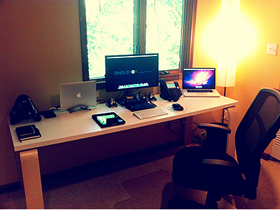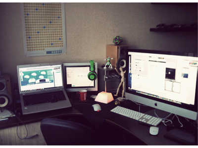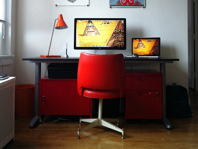 Bueno sea cual sea la razon hay quienes ya han superado esta etapa y han concebido excelentes espacios de trabajo que envidiamos, es por eso a razón de visualizar ideas para nuestra oficina o espacio de trabajo, les comparto esta recopilación que realize en el sitio Dribble con 18 excelentes espacios de trabajo de diseñadores, fijense que muchas veces la iluminación de un area de trabajo puede ser la diferencia.