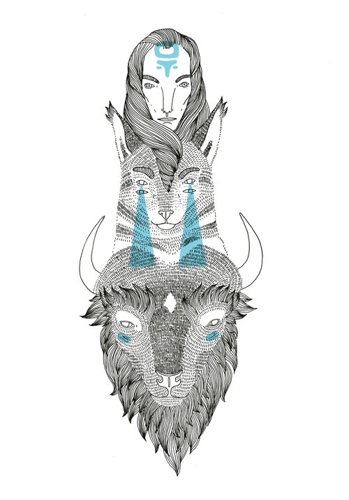 Bellísimas ilustraciones creadas por Ooli Mos que fueron inspiradas en la cultura y la libertad de los Indios Americanos.