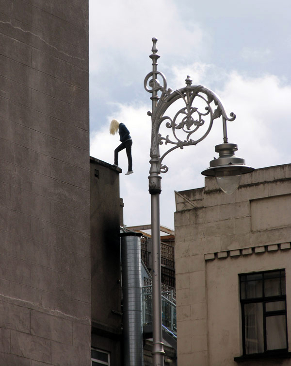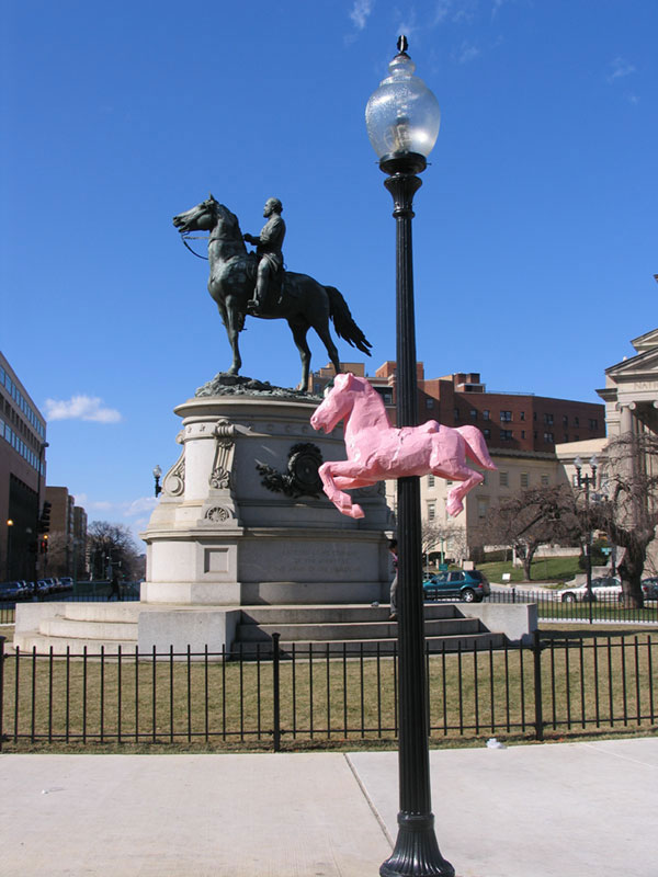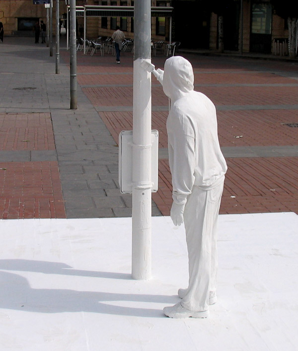 Mark Jenkins es un artista Americano conocido por sus obras las cuales son instaladas en las calles, sus obras resultan bastante curiosos y algunos casos impactantes, actualmente Mark vive en Washington, su primer proyecto fue realizado en Rio de Janeiro Brasil en 2003, es realmente bueno, mejor vean las imagenes y opinen.