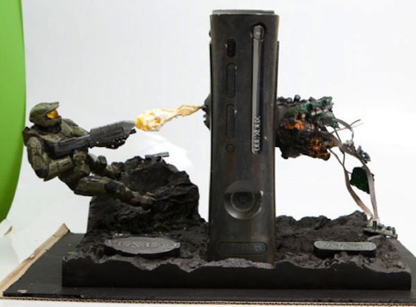 Las imagenes que acompañan este post son de una impresionante carcasa de Halo para Xbox 360, esta fue vendida por eBay y era una pieza unica, tenia un costo de $10,000 dólares los cuales fueron donados a la caridad, el diseño de la carcasa de Halo para Xbox es impresionante y muy detallado, pareciera una trabajo con un material similar la plastilina epoxica o algo similar, el resultado una pieza 3D con el Master Chief disparando hacia la consola, simplemente genial y seguramente el deseo de muchos de los fans de esta saga.