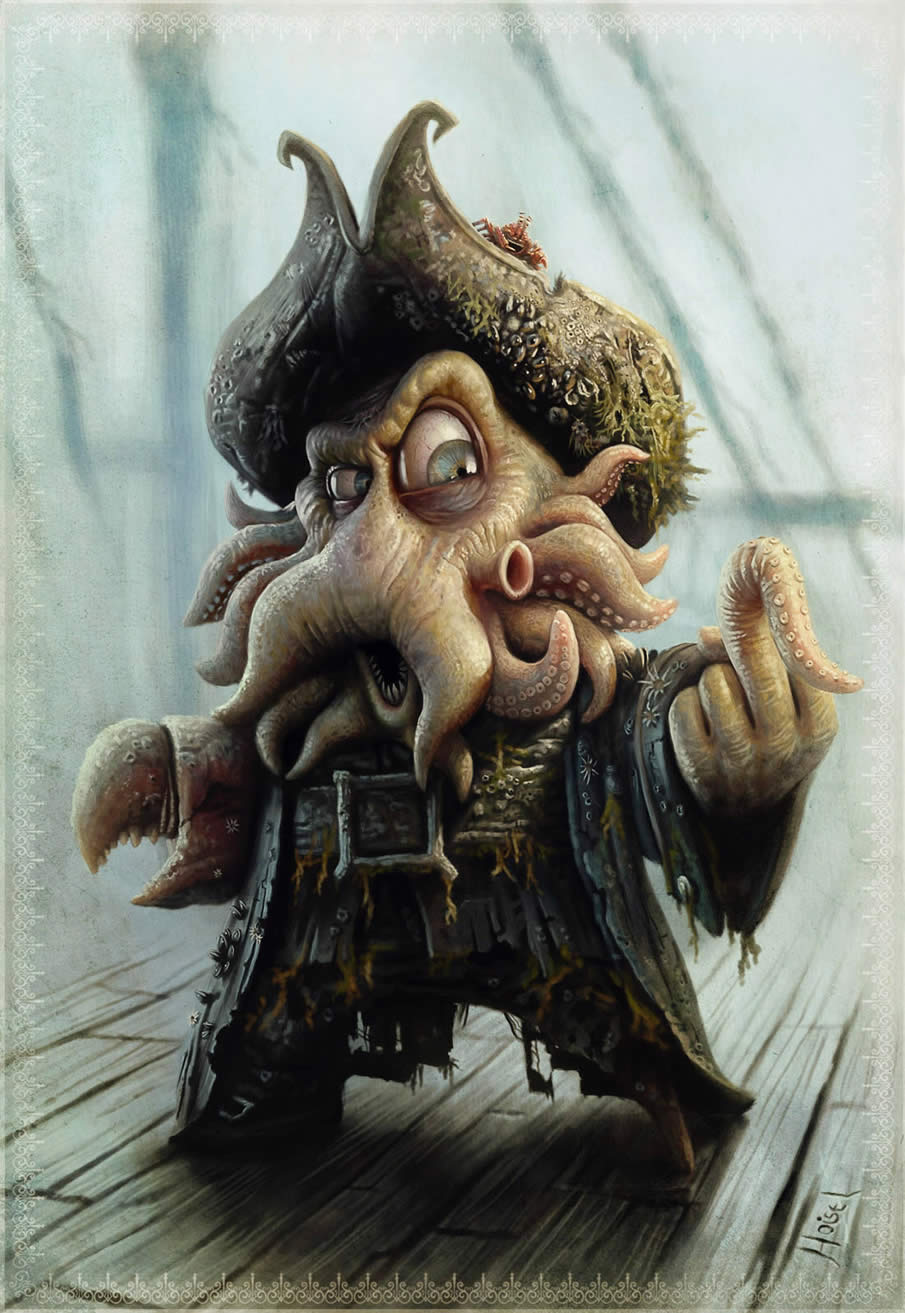Les dejo una selección de divertidas ilustraciones por Taigo Hoisel un excelente ilustrador nacido en El Salvador con grandes cualidades en las artes gráficas, la siguiente galería muestra algunas de sus ilustraciones en las cuales imprime un sentimiento de humor bastante bueno, incluso convirtiendo conocidos personajes en niños, como el caso de uno de los capitanes de Piratas del Caribe, en fin espero que les gusten las ilustraciones creativas de Hoisel.