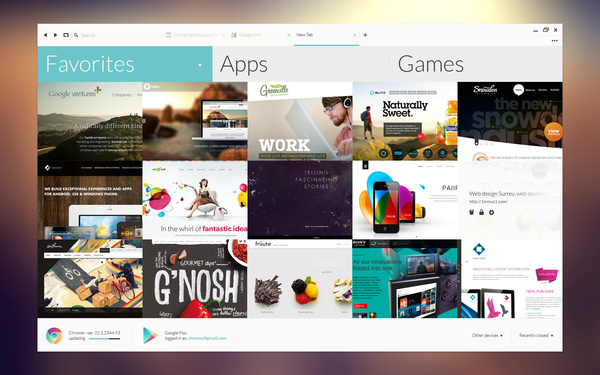 Ya les compartíamos un excelente concepto de diseño para Facebook, ahora queremos compartir otro ejemplo de un concepto de diseño UI para Google Chrome diseñador por Pawel Durczok, este increíble diseño fue un trabajo personal de Pawel quien no ha dado mucho seguimiento al proyecto, pero sin embargo podemos ver una excelente propuesta de diseño minimalista para Google Chrome.