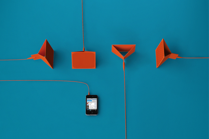 Esta bocina de nombre FLYM es producido por Desingnaffairs STUDIO, no requiere baterías pues basta con conectarlo a tu reproductor o celular para que funciones y en gran parte esto es lo que lo hace delgado y tener su particular diseño, es cómodo ya que se puede doblar y con ayuda de pestañas magnéticas se dobla y lo puedes guardar incluso en tu bolsillo. Existen de varios colores y son de entrada 3.5mm estándar .