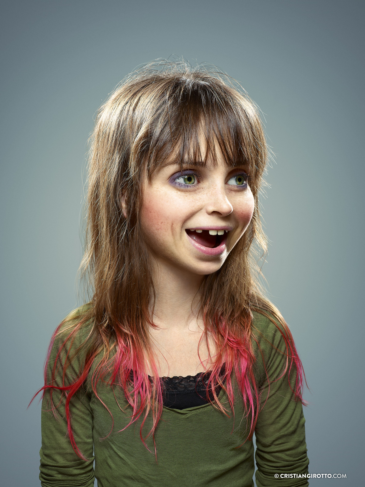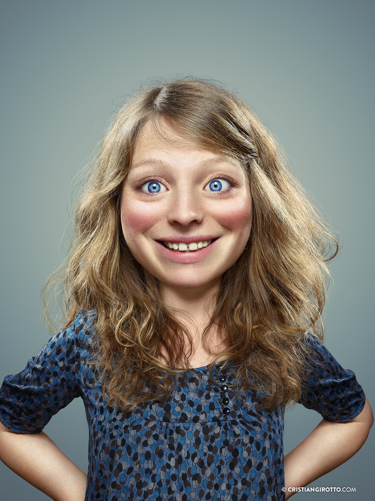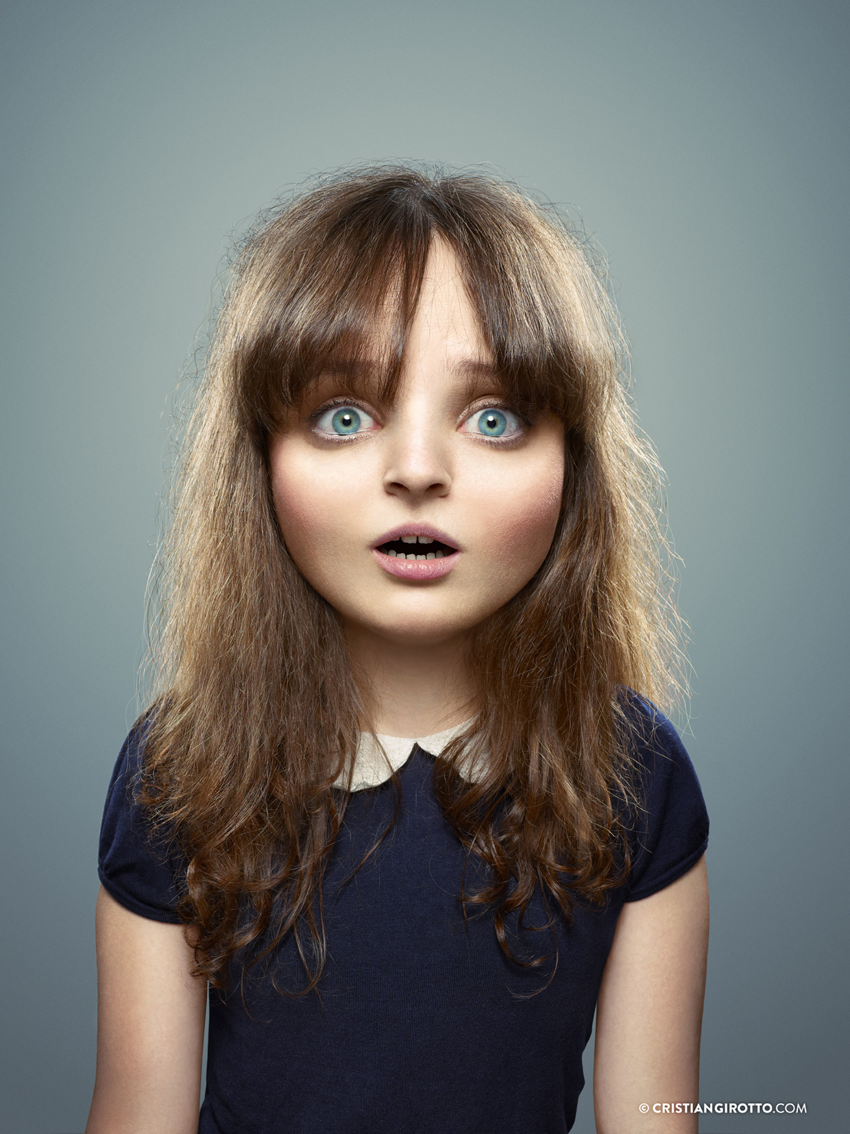 Cristian Girotto lleva la idea del niño interior a otro nivel, retocando fotos y dándole caracteristicas de infantes con los ojos grandes, pequeños cuerpos y miradas inocentes.