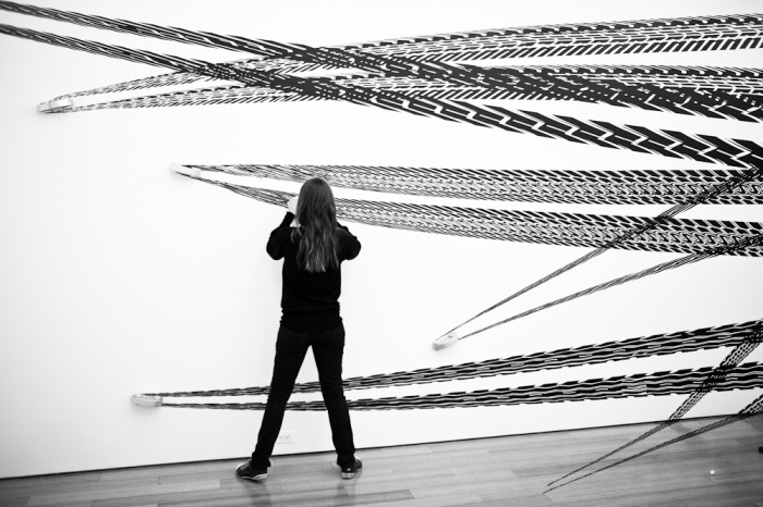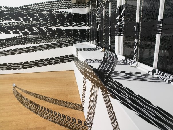 Estas ilustraciones están hechas con vinilo y se pueden hallar algunas de sus obras en The Aldrich Contemporary Art Museum.