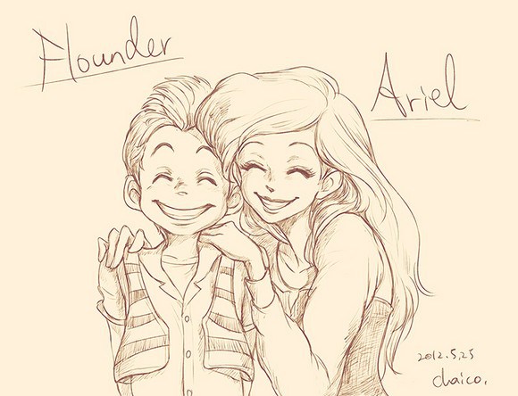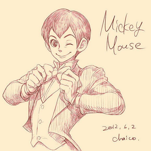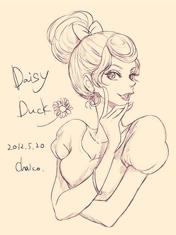 Chaico creo ilustraciones humanas de Mickey, Donald, de los personajes de pato aventuras, de Simba, Timon, Pumba, también de Ariel y Flounder de La Sirenita, y todos muy pero muy bien representados considerando todos los gestos y características faciales que representan a cada uno de estos personajes.