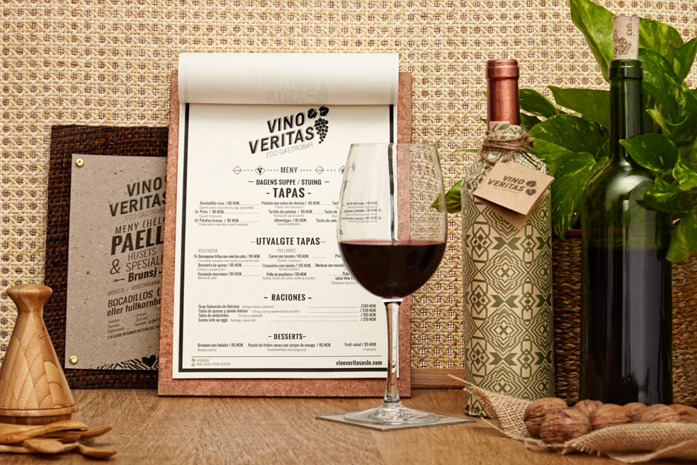 El nombre del restaurante es Vino Veritas Oslo para quienes igual realizaron el trabajo de diseño de interiores, Vino Veritas se encuentra en Noruega y ofrece un menu de comida orgánica basado en un menú de alimentos estilo español. Les dejo algunas galerías de imágenes donde podrán ver parte del proyecto de Branding para Vino Veritas Oslo y también una galería extra con imágenes del diseño de interiores que realizo el equipo creativo del estudio Masquespacio.
