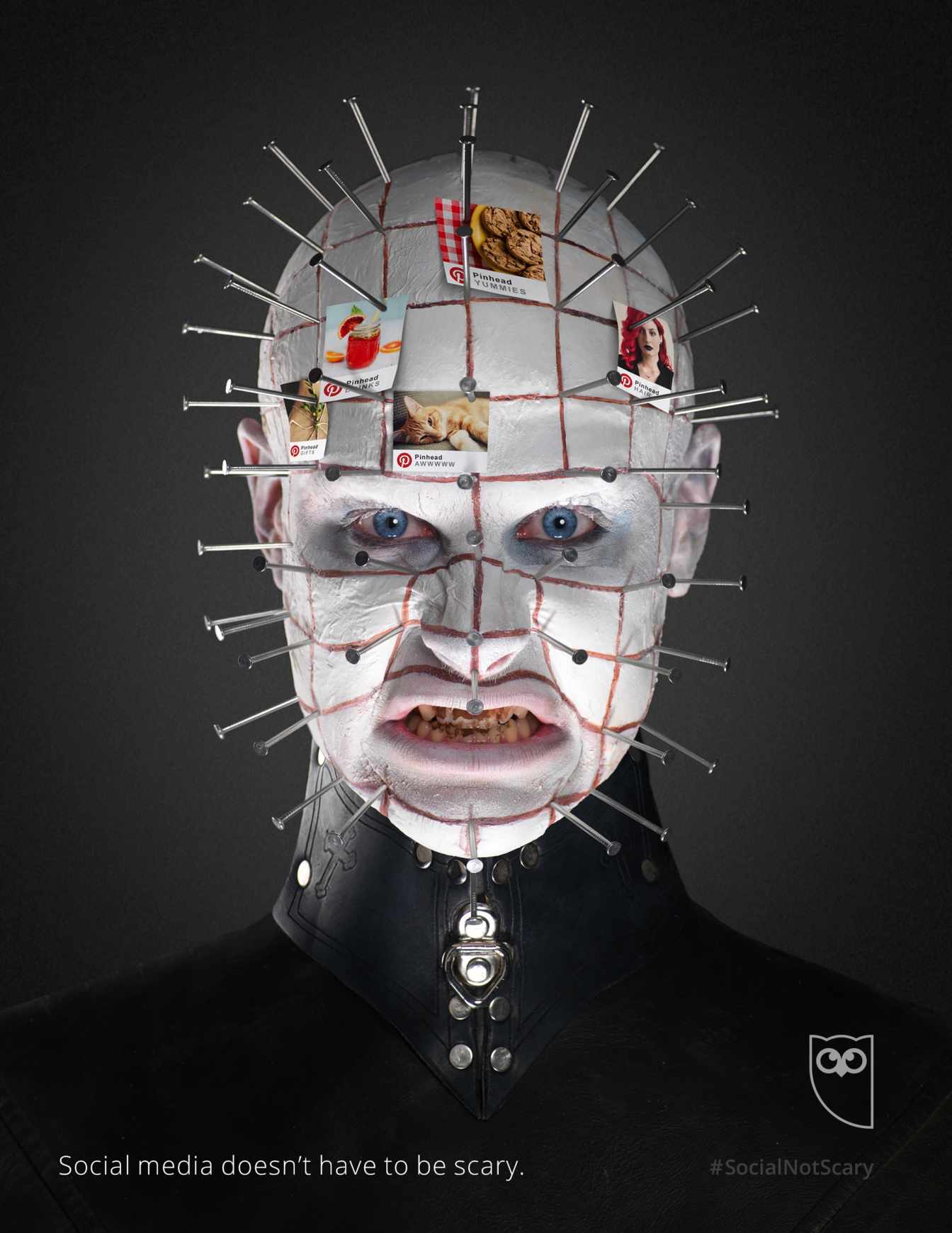 Para los carteles los creativos se inspiraron y utilizar a personajes clásicos de las películas de Halloween y que en estas fechas inspiran a muchos disfraces, es por ellos que los chicos de Hootsuite se inspiraron en personajes de Halloween para sus carteles, utilizaron imágenes de El Aro, La Bruja de Blair, American Psyco, El resplandor, etc.