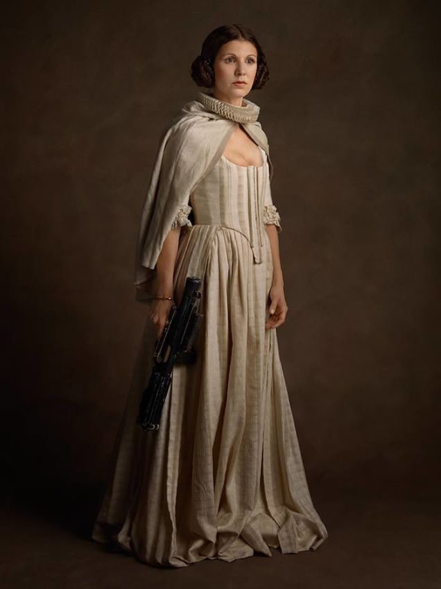 Es decir que confecciono una serie de disfraces pero con el estilo de ropa que utilizaban en el siglo 16 en Europa, en la exhibición presento no solo a superhéroes como Spiderman, Batman, Iron Man, si no también a personajes de la saga Star Wars como a Troppers, R2D2 y al mismo Darth Vader, el resultado es genial.