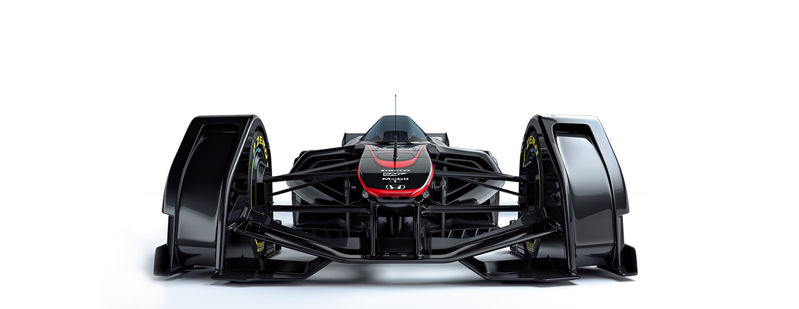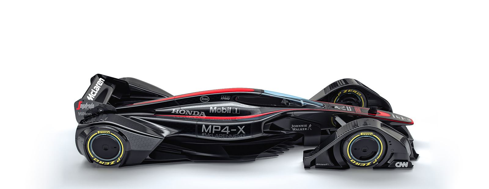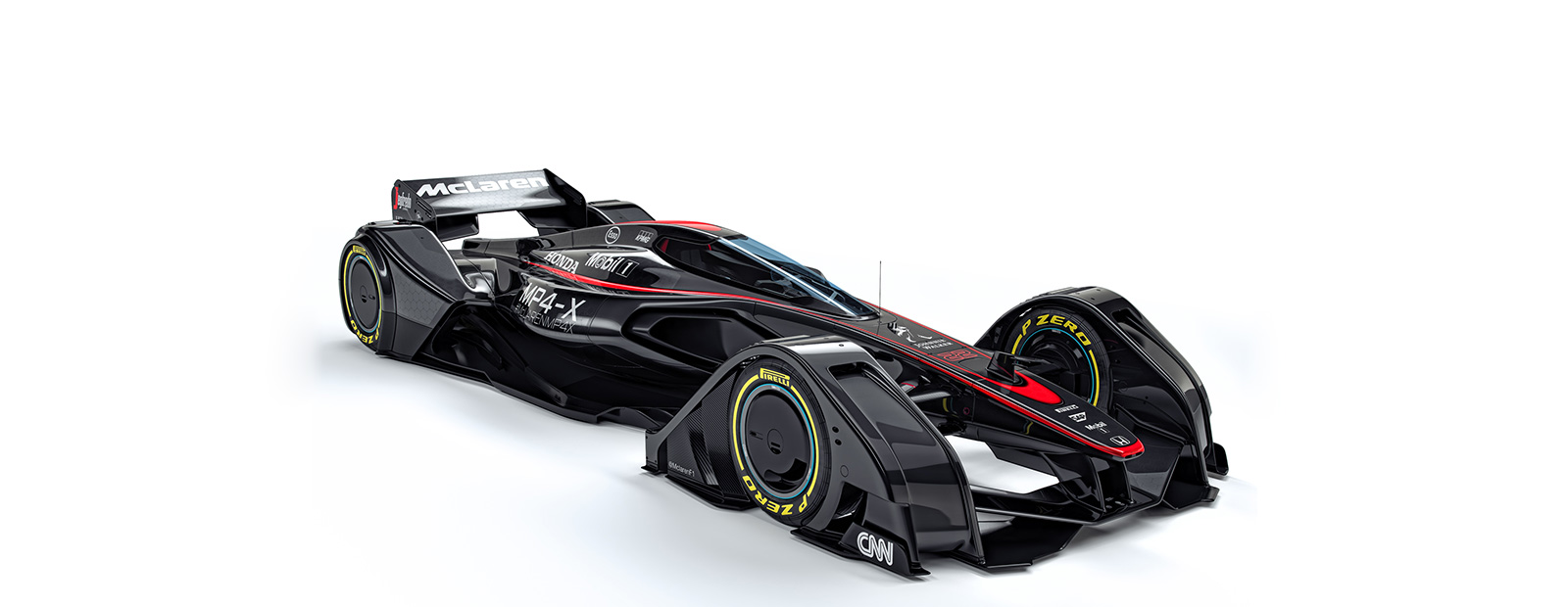 Con el concepto furutista del auto de carreras McLaren MP4-X, queremos mirar hacia el futuro e imaginar el arte de lo posible, hemos combinado muchos ingredientes claves de la Formula 1 en este concepto: velocidad, emoción y rendimiento con las narrativas emergentes de este deporte, como cabinas cerradas para mejorar la seguridad de los pilotos y tecnologías de energía híbrida.