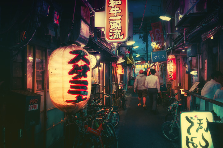 Fotografías de la vida nocturna en Tokio realizadas por el fotógrafo Japones Masashi Wakui con un sutil trabajo de post-producción en cada imagen para lograr un efecto de suavidad y calidez muy bonito y simple en cada fotografía con tan solo hacer ajustes en la iluminación de cada fotografía, las fotos muestran un lado tranquilo de esta gran ciudad llena de colores y luces gracias a las cuantiosas lamparas de papel que adornan las calles de pequeños comercios y luces de neón en los edificios cubiertos de la publicidad mediática que también invada a esta gran ciudad, fotografías que en realidad invitan a imaginar lo lindo que sería caminar por Tokio durante una noche.