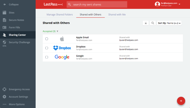 - Creación de carpetas de contraseñas compartidas hasta con 5 personas, algo así como carpetas familiares. (Premium)
