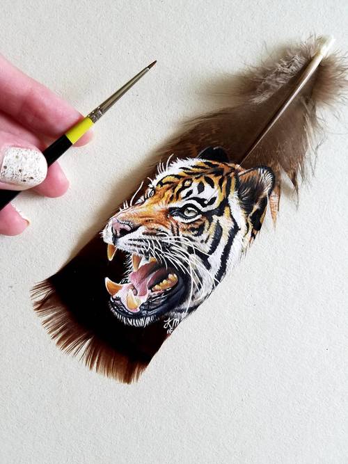 El día de hoy compartimos con ustedes el trabajo de la artista Krystle Missildine; la cual, trabaja con materiales un poco peculiares como podrán darse cuenta; Krystle ha realizado una colección de retratos animales en algunas plumas que han sido mudadas naturalmente por diversos animales.