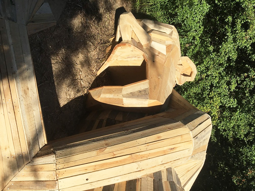 Este noble objetivo ha sido encargado al mencionado artista que ha realizado unas esculturas gigantes de madera reciclada para simular la apariencia de gigantes; las cuales han sido desperdigadas en las diferentes areas verdes que se encuentran en los alrededores de la ciudad.