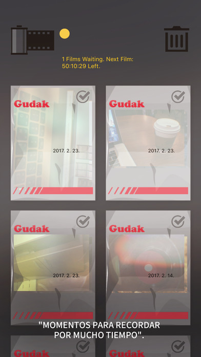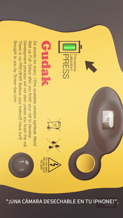 Gudak, es el nombre de esta aplicación disponible en la App Store; y para cual, debes desembolsar una cuantas monedas; esta aplicación tiene una cuantas caracteristicas que la hacen “especial”; pues permite a sus usuarios capturar fotografías a la manera antigua… incluido los tiempos de revelado y de espacio.