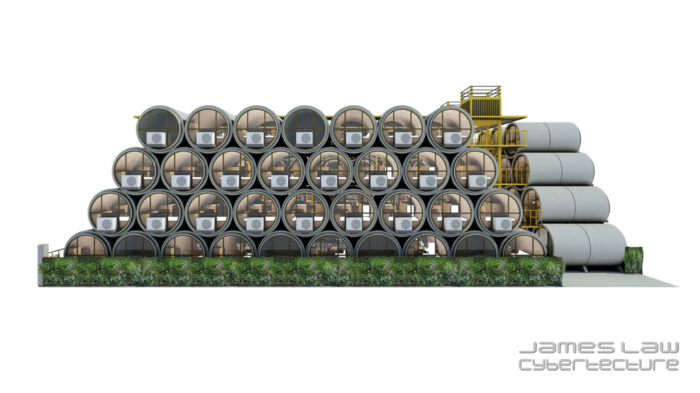 Es por ello, que la firma arquitectónica James Law Cybertecture ha diseñado un proyecto de casas/departamentos hechos con una de las bases de construcción; tuberías de hormigón, el resultado es increíble, muy atractivo y bastante hipnotizante.