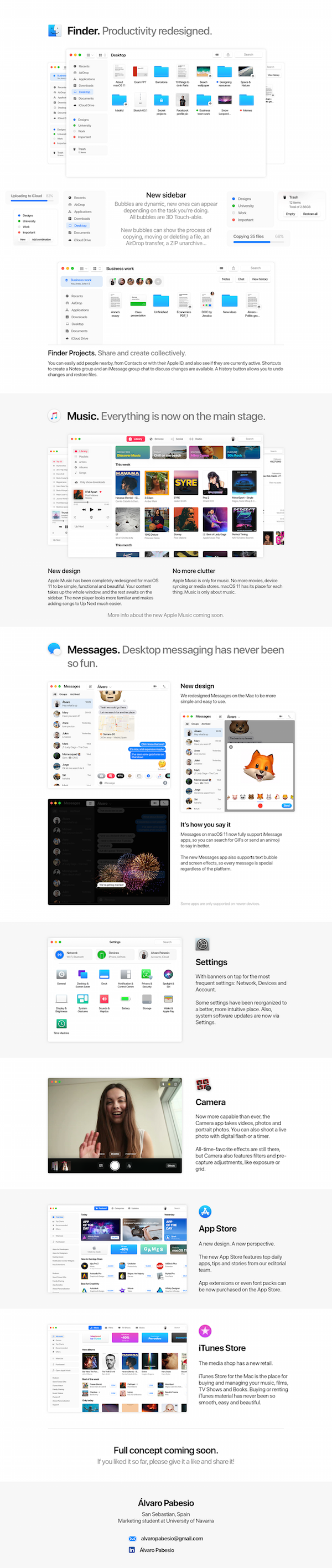 El estudiante Álvaro Pabesio de la Universidad de Navarra en España ha creado una genial propuesta diseño que optimiza la UX/UI de lo que “sería” la próxima actualización del sistema operativo MacOS 11; claro, desde el punto de vista del estudiante que ha hecho esta propuesta.