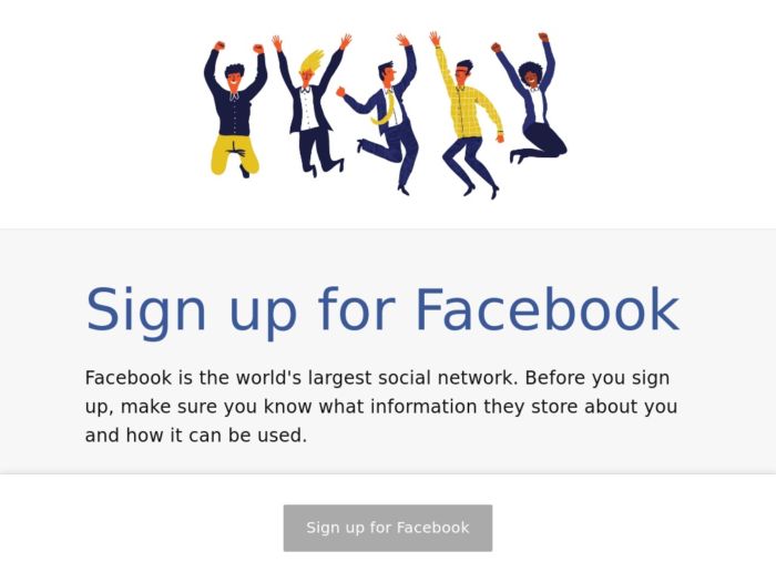 Derivado de estas manifestaciones, el diseñador Marten Bjork se ha dado a la tarea de crear un página de inicio de registro en favor de la transparencia que busca darle información al usuario de como será tratada su información, y por supuesto, le da la alternativa de estar o no de acuerdo con el uso de determinadas funciones; señalando que esta pagina es como deberia haber sido Facebook desde un principio, totalmente transparente.