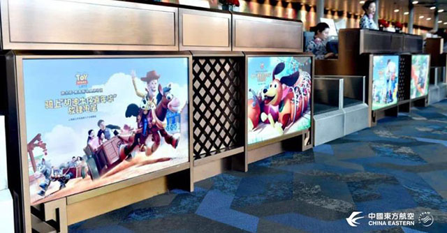 Con motivo de la apertura del parque de Toy Story en Disney Resorts en Shanghái, la aerolínea China Eastern Airlines ha personalizado algunos de sus aviones con el estilo de Toy Story y sus personajes, esto como un tipo de colaboración publicitaria para Disney en Asia.