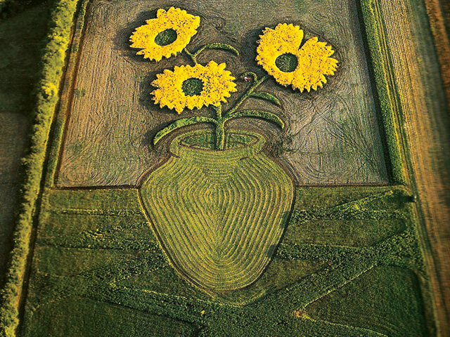 El día de hoy quiero compartir con ustedes el trabajo del artista Stan Herd; el cual gusta de plasmar y representar algunas figuras y pinturas famosas en los cultivos, algo así como lo hacen los extraterrestres.