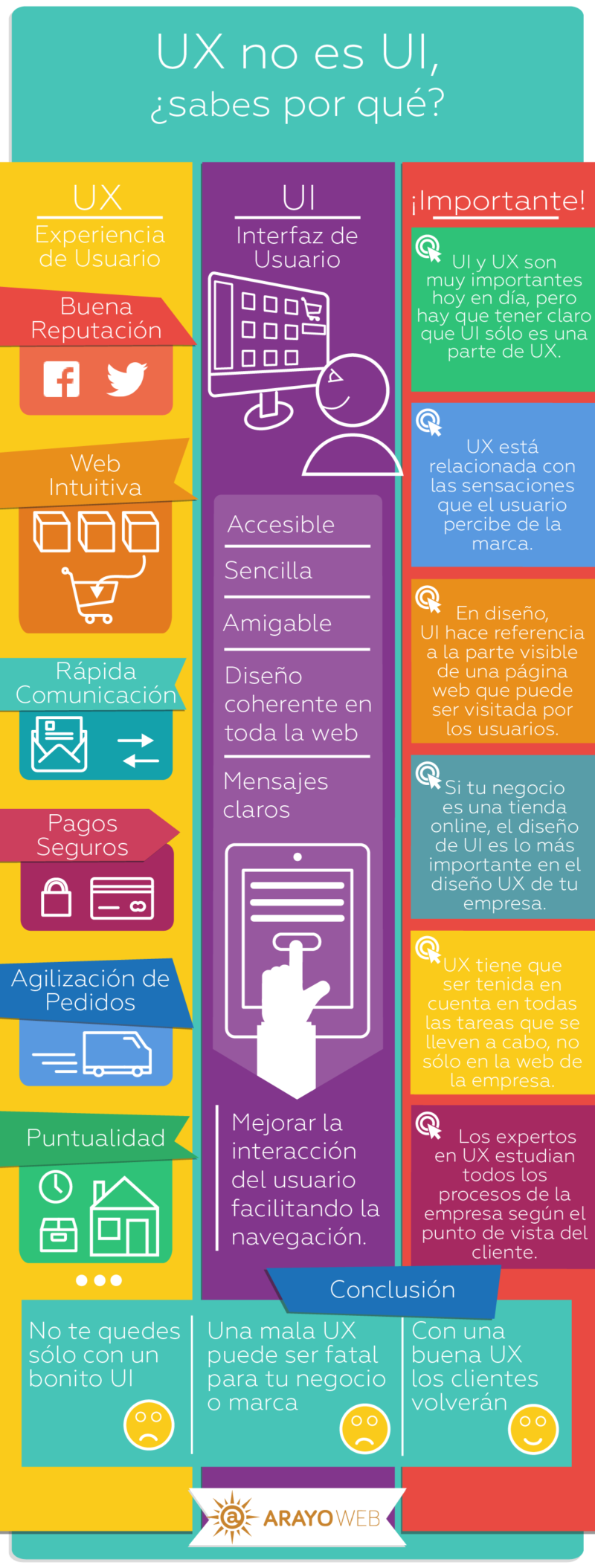 Para tratar de aclarar las dudas, el día de hoy queremos compartirles un poco de información para conocer la diferencia entre UI y UX; y qué mejor para hacerlo que los vehículos más eficaces de transferencia de información en la web; las infografías.