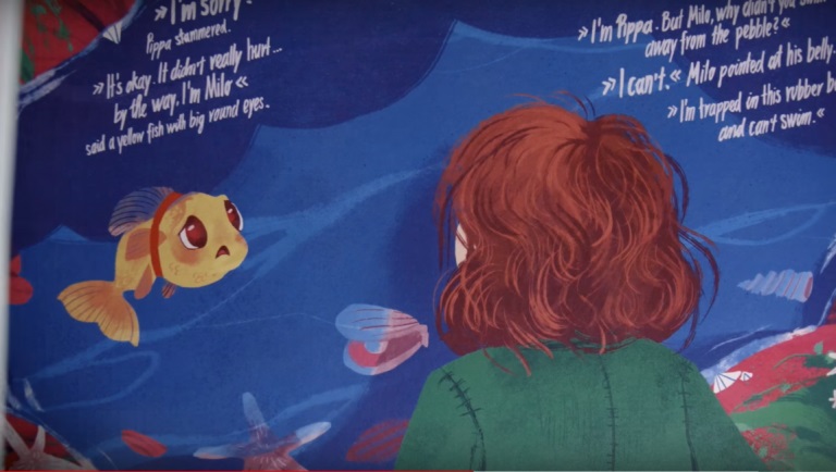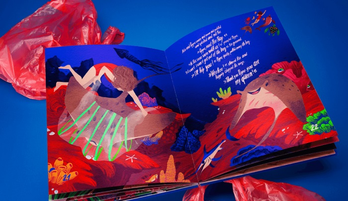 Esta iniciativa consiste en el lanzamiento de “Ocean plastic book“; un libro diseñado a partir de residuos plásticos rescatados y reciclados de los mares para buscar crear conciencia en los niños, pues, se trata de un libro infantil que cuenta la historia de una niña que se encuentra con criaturas marinas en aprietos debido a la contaminación de los mares.