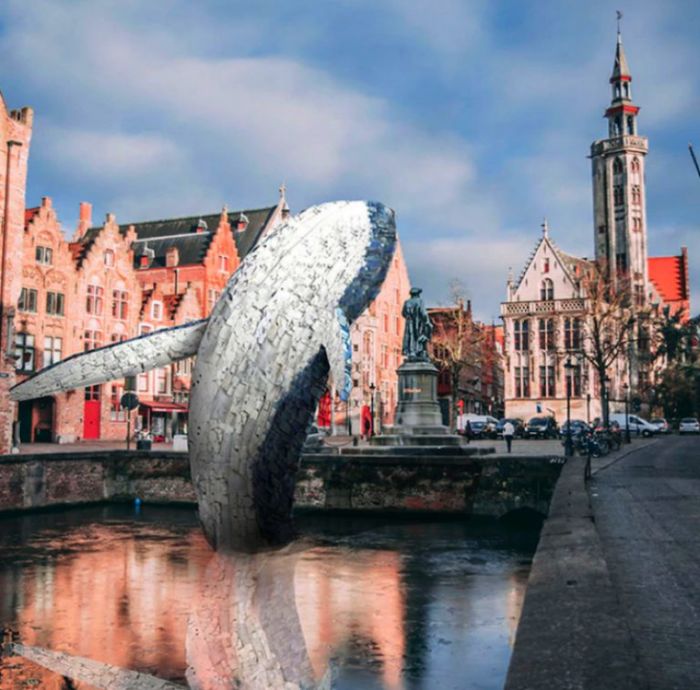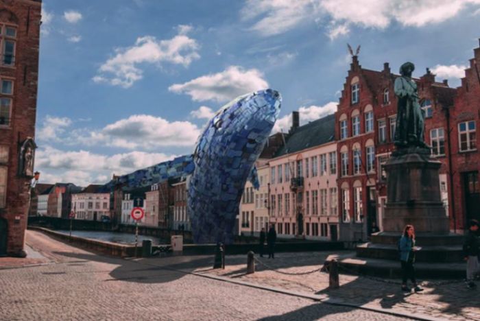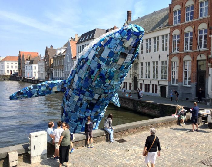 Pues, en este caso y de la mano de la agencia de diseño arquitectónico STUDIOKCA se ha implementado en las calles del puerto de Brujas en Bélgica una ballena gigante hecha de plástico rescatado del mar.