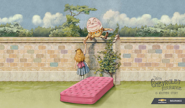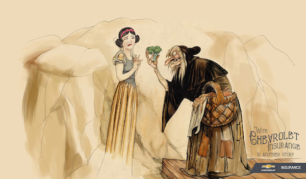 Chevrolet en colaboración de la agencia creativa Grupo Zea de origen brasileña y del ilustrador Jaime Pullas ha lanzado una campaña que re-imagina finales de ciertos cuentos infantiles, si hubieran contado con planes de cobertura.