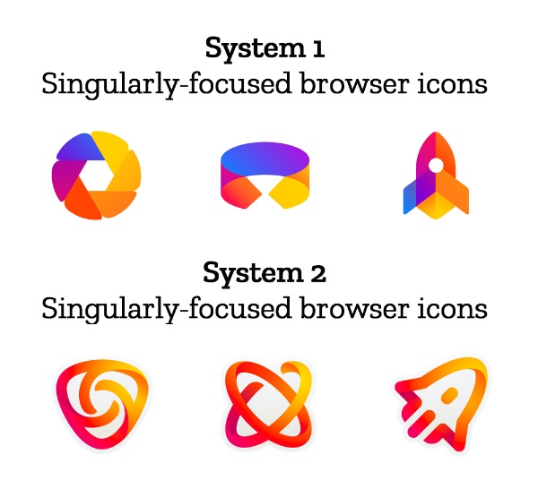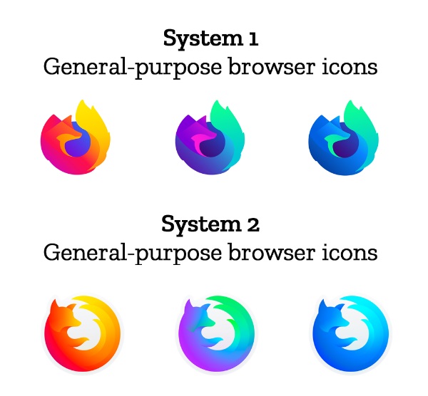 Para este red-diseño Mozilla ha presentado 24 logotipos en 2 sistemas diferentes; y está valorando la opinión de su comunidad para elección de los mismos.