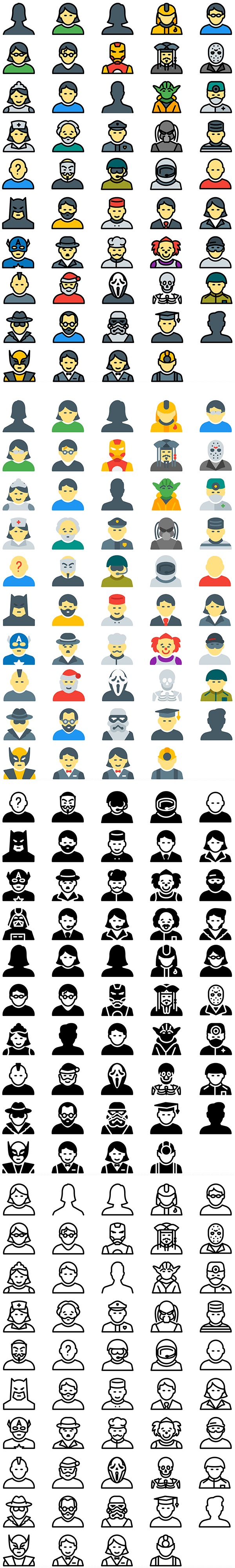 Sin más, te dejo con este paquete de 200+ iconos para avatares que vienen en formatos .eps, .svg o .png para descargar gratis.