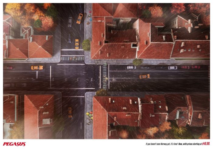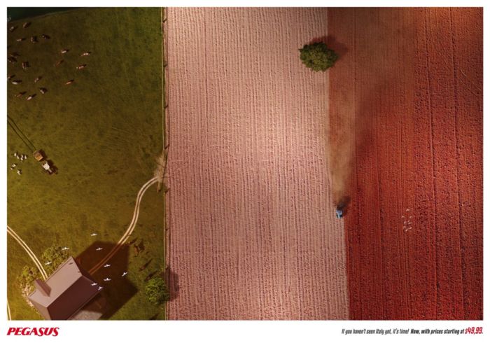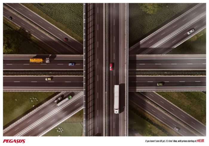 Como parte de una campaña para promocionar destinos turísticos es que la aerolínea Pegasus Airlines ha lanzado una interesante campaña gráfica que transforma algunas imágenes aéreas en banderas de países como Reino Unido, Italia o Noruega.