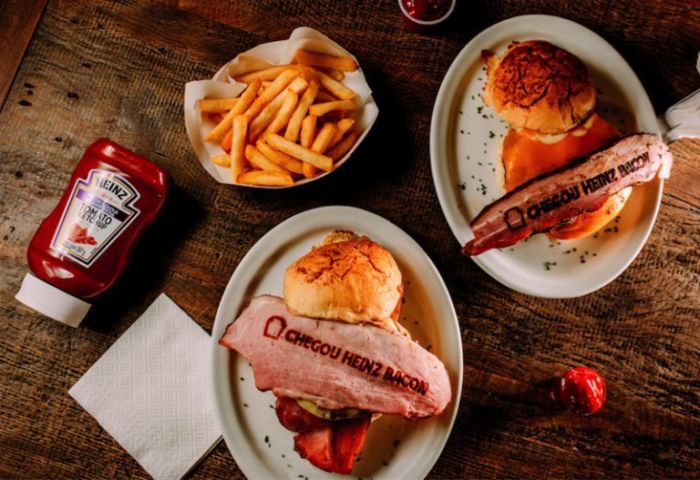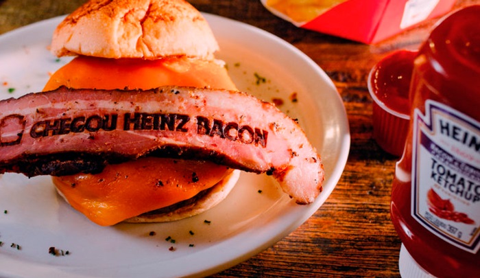 Ha llegado Heinz Bacon, es la traducción de esta leyenda impresa en tocino; la cual, podrás visualizar a continuación mientras te dan ganas de degustar una hamburguesa.