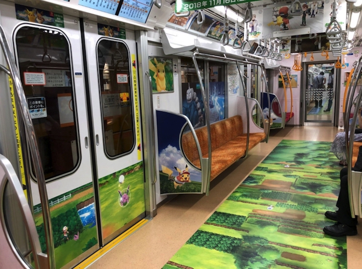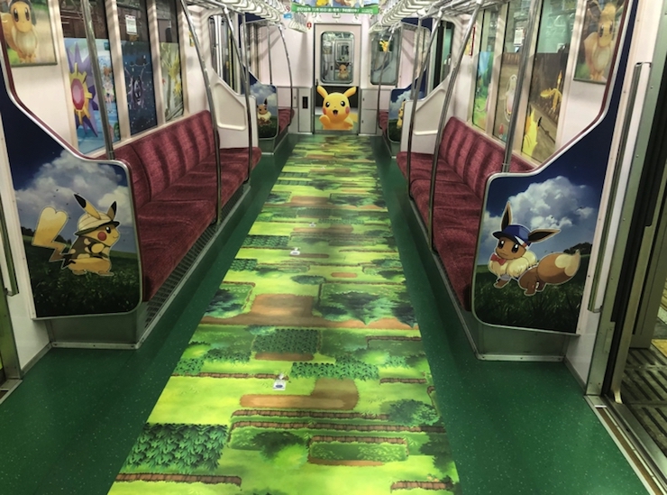 En esta ocasión, Nintendo ha colaborado con las autoridades del metro de Tokyo para promocionar el próximo lanzamiento de Let’s Go Pikachu y Let’s go Eevee; transforman en metro en un paisaje móvil de Pokémon; así como en un galería gigante llena de pósters con diversos personajes de franquicia.