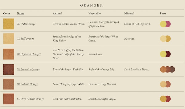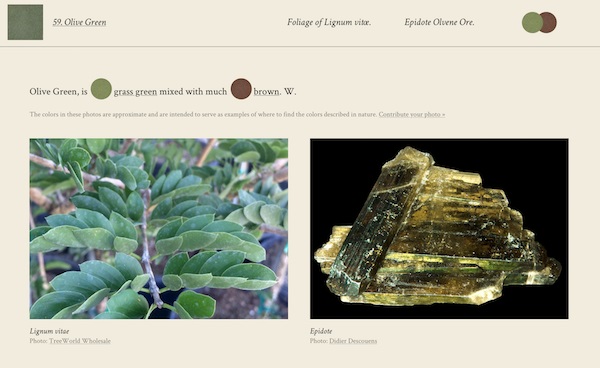 Werner’s Nomenclature of Colours, tiene en su haber cerca de 110 muestras de colores con sustento fotográfico de flora y fauna para su fácil identificación; lo cual, es bastante grato ya que nos ayuda a tener una idea de su localización en la naturaleza, y por supuesto, nos facilita su búsqueda a través de los códigos de Pantone.
