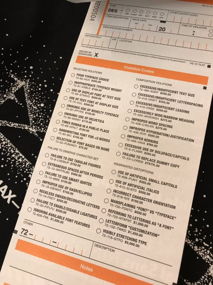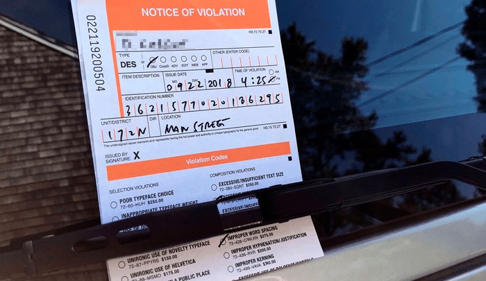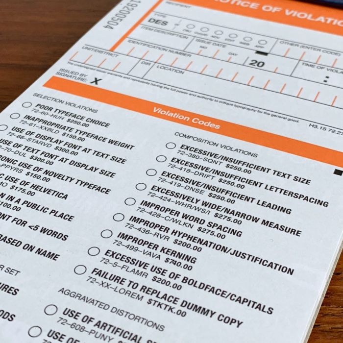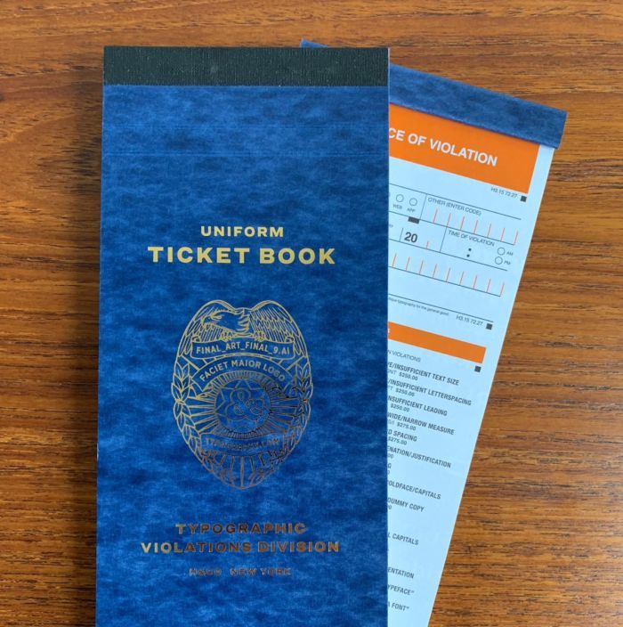De la mano del estudio de diseño tipográfico Hoefler & Co. llega lo que ahora conocemos como “The Typographic Ticket Book“; el cual, no es más que un libro de papeletas para multar los crímenes contra el diseño gráfico.