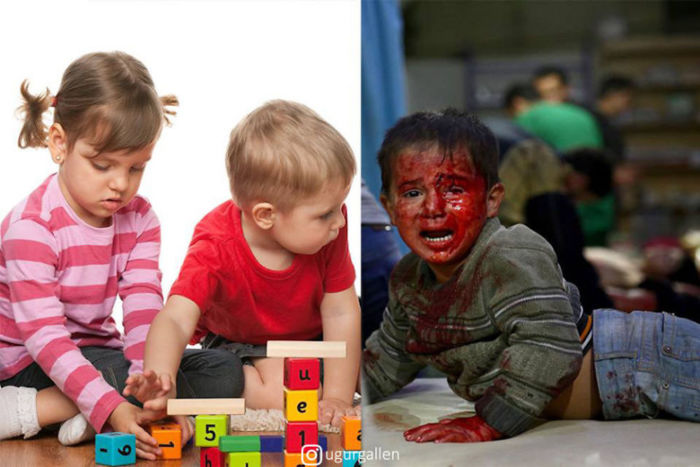 Ugurgallen es un creativo amante de la fotografía digital que busca hacernos reflexionar sobre las realidades que existen alrededor del mundo; es decir, hacernos ver los contrastes entre la felicidad de algunas personas alrededor del mundo y los infiernos vividos por la gente que soporta guerras, pobrezas y malos gobiernos.