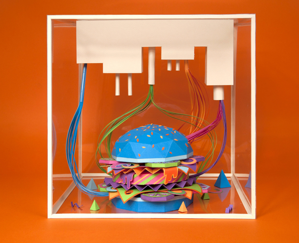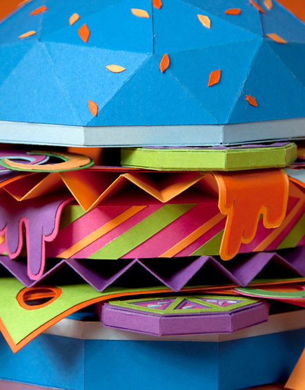 The Future of Food es el título de esté excelente trabajo de papercraft realizado para la portada de la revista Icon, se trata de una hamburguesa hecha con papel completamente, el resultado es simplemente genial, es una muestra que ante las solicitudes de clientes photoshop no es la única opción de los diseñadores, quienes crean no tienen limites, les dejo las fotografías de este diseño en papecraft.