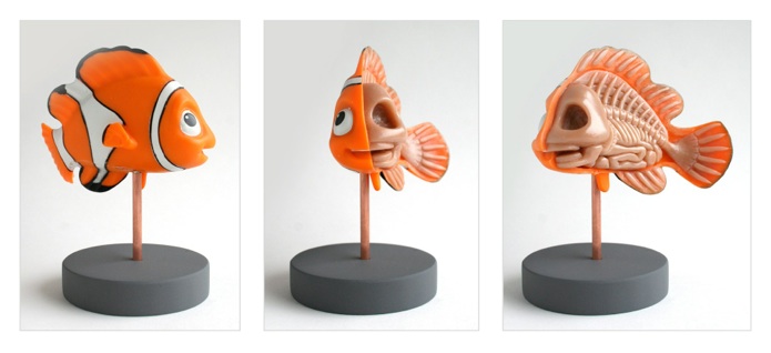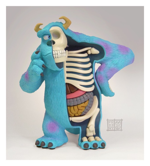 Les presento el trabajo de Jason Freeny un talentoso artista originario de Silver Spring, Maryland en los Estados Unidos, las imágenes que presentamos de su trabajo en esta galería muestran algunas increíbles esculturas en las que se representar la anatomía de personajes famosos de caricaturas, siendo la mitad del cuerpo el esqueleto o figura anatómica de cada personaje, simplemente genial, en la galería que les compartimos podemos ver imágenes de Sully de Monsters Inc., Hello Kitty, Lotso de Toy Story, Nemo, Mario Bros, Micker Mouse, etc.