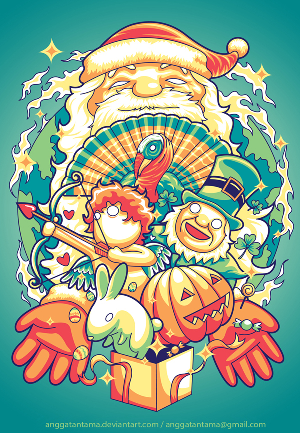 Les dejo una nueva galería de imágenes esta vez se trata de las fantásticas y coloridas ilustraciones creadas por la diseñadora Angga Tantama de Indonesia, su estilo es bastante bueno con trazos limpios y continuos haciendo lineas gruesas que hacen sobre salir las facciones y partes del cuerpo de los personajes y sus elementos, Angga trabaja como freelance como diseñadora gráfica y muchas de sus ilustraciones son hechas para imprimir en playeras.