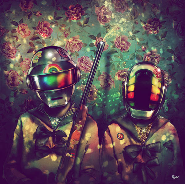 Les dejo una pequeña galería con algunos de los retratos bizarros de Daft Punk que serán presentados en esta interesante exposición de arte.