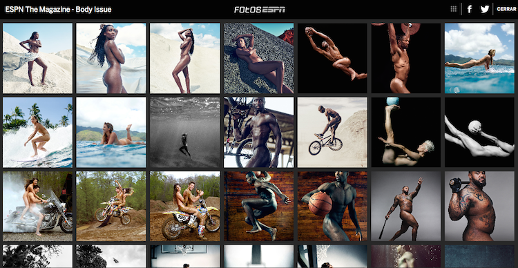 ESPN Magazine lanzo una edición especial con un increíble galería de fotos titulada Body Issue 2014 en la que un total de 21 atletas internacionales como Venus Williams cinco veces campeona de Wimbledon, Michael Phelps ganador de 18 medallas en los últimos Juegos Olímpicos, Prince Fielder beisbolista y primera base de los Rangers de Texas, entre otros posan desnudos representando sus diferentes especialidades, la galería es genial, no son fotos morbosas, son fotografías de desnudos artísticos muy buenas y que cuidan cada detalle, algunos de los fotógrafos que participaron en este genial proyecto de ESPN son: Peter Hapak, Carlos Serrao, Morgan Maassen, entre otros.