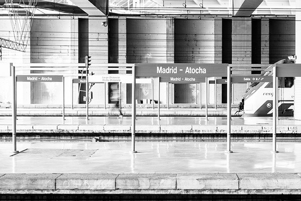 Fotografías de la estación Atocha en Madrid, España en memoria de los ataques terroristas del 11M (11 de Marzo de 2004), un trabajo realizado por el fotógrafo español Pedro Cobo.