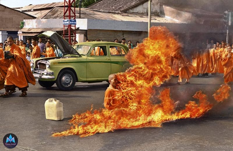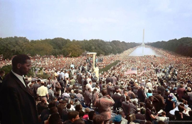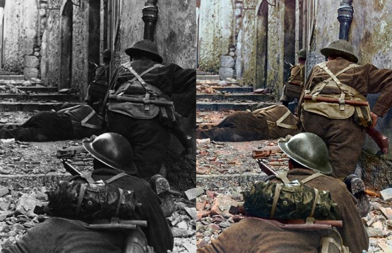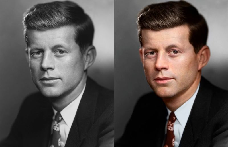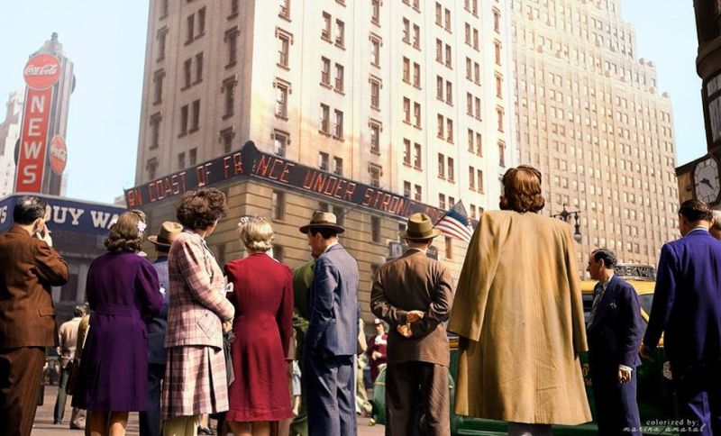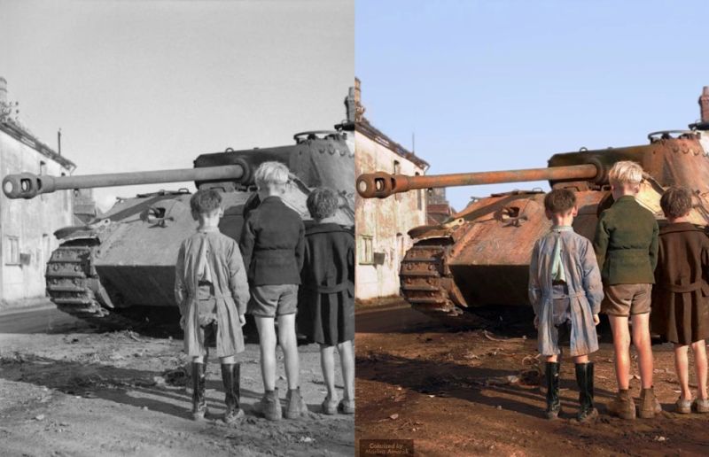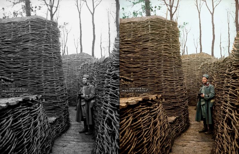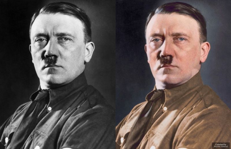 Cabe recalcar que este trabajo de Marina no fue realizado sin saber nada de historia, es decir no fue colorear por colorear, por así decir. Detrás de cada imagen hubo un proceso de investigación para intentar revivir los momentos como en realidad se vieron en aquellos años, los colores de los ojos, la ropa que utilizaban los personajes, el color de los edificios, en fin, un trabajo que merece un gran reconocimiento.Francisco Fernando, archiduque de Austria. Su asesinato en Sarajevo precipitó la Primera Guerra MundialUn soldado austriaco en unas trincheras de madera durante la Primera Guerra MundialLos viejos muelles al final de Wall Street, en Nueva York, eran conocidos como “Banana Docks” por el comercio de esta fruta (c. 1900)El padre del psicoanálisis Sigmund FreudAdolf HitlerHombres desempleados en una calle de San Francisco (1939)La infantería canadiense avanza contra los alemanes en Campochiaro (Italia) en 1943 durante la Segunda Guerra MundialLa rendición de un soldado alemán ante un soldado soviético cerca de Moscú (1941)Tres niños franceses contemplan un tanque Panther alemán destruido cerca de Falaise, en Francia (1944)Prisioneros en el Campo de concentración de Wöbbelin (Alemania)La Times Square de Nueva York durante el día del desembarco de Normandía, 6 de junio de 1944La reina Isabel II del Reino UnidoMarcha sobre Washington por el trabajo y la libertad, la manifestación más grande en la historia de Estados Unidos (1963)La actriz Audrey HepburnEl monje budista Thích Quang Duc se quema a lo bonzo en Saigón (1963)El trigésimo quinto presidente de Estados Unidos John F. KennedyLee Harvey Oswald, el asesino de John F. Kennedy antes de ser asesinado por Jack RubyUn hospital de campaña escondido en un pantano en 1970, durante la guerra de Vietnam