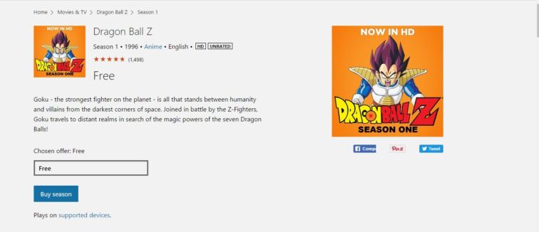 Descarga la primera temporada de Dragon ball Z cortesía de Microsoft
