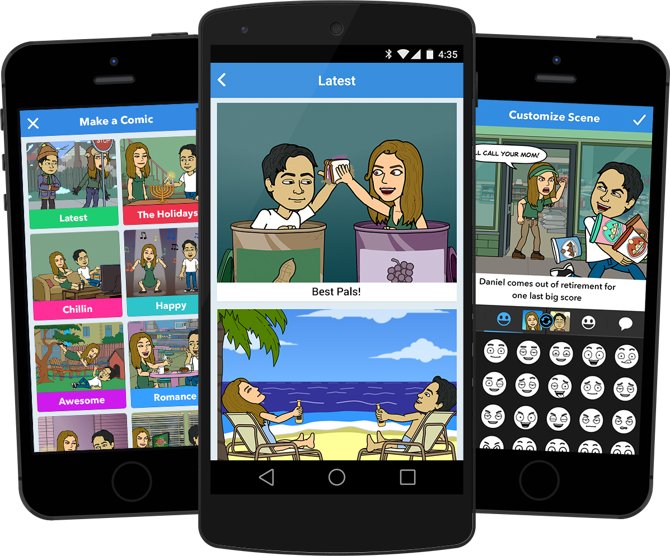 Utilizando parte de la idea de Bitmoji llamada Bitstrips ha desarrollado la posibilidad de que los usuarios creemos nuestros propios emojis con nuestra cara o la de nuestros amigos con el fin de demostrar más situaciones, sentimientos o acciones con emojis acordes a lo que queremos decir.