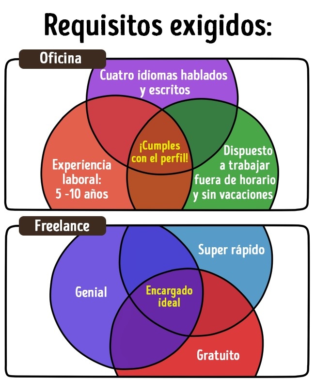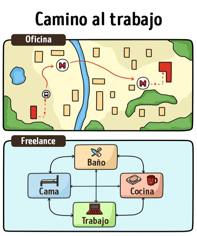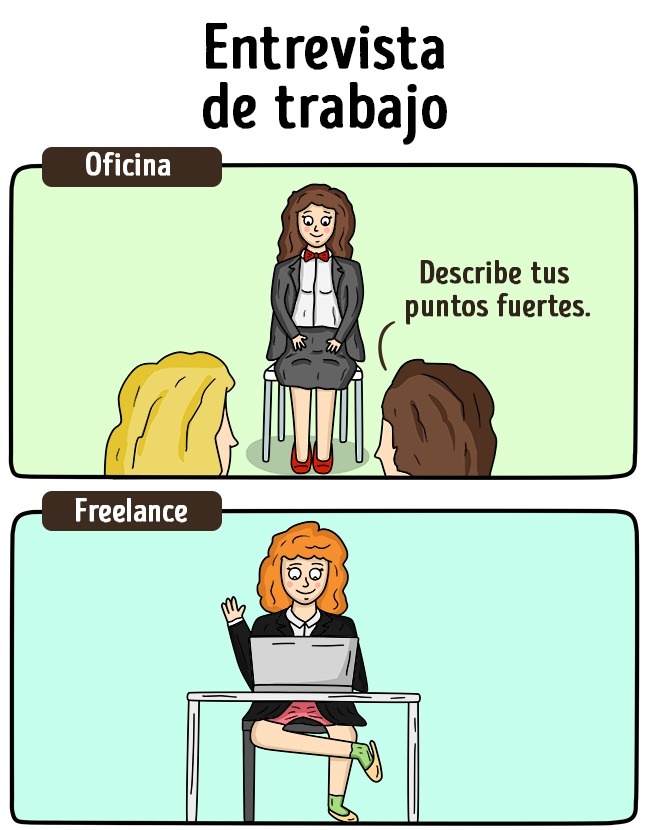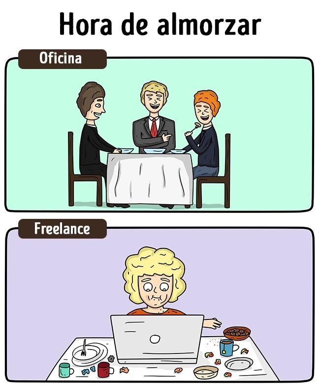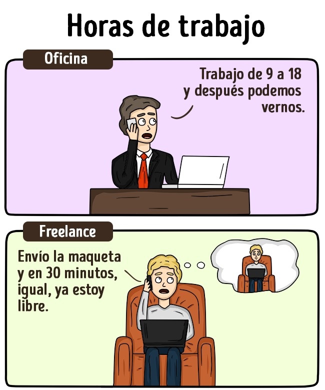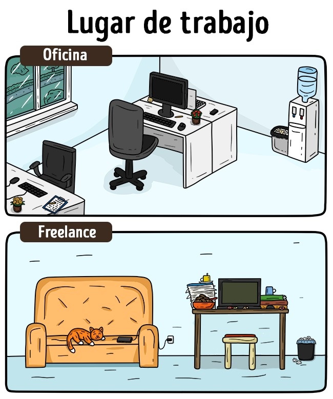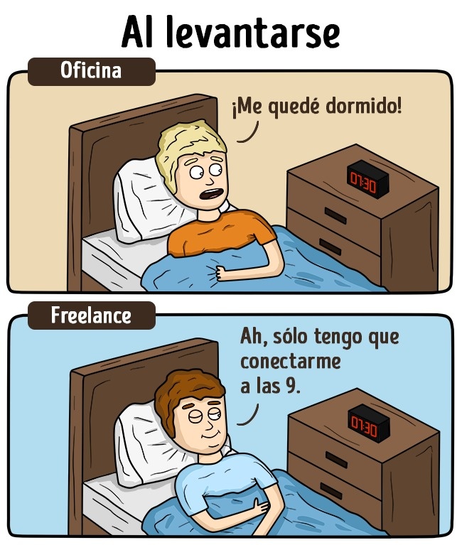 Comparto con ustedes este genial comic que ilustra la vida del Freelance con respecto de una vida un trabajador de oficina; ritmos de vida distinto, parámetros de convivencia y demás son las características que se comparan en este comic.