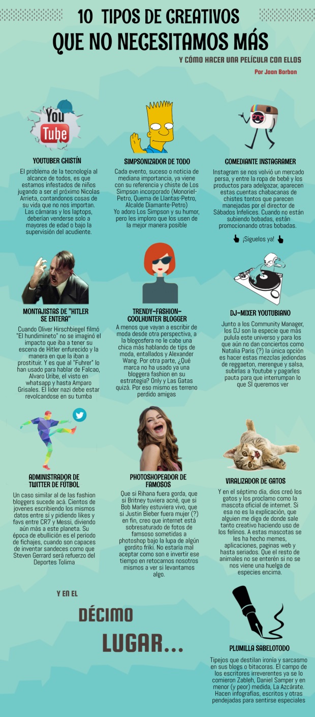 Es por eso que el dia de hoy les comparto esta infografía que nos permite saber que tipos de “creativos” ya no son bien vistos en la red.